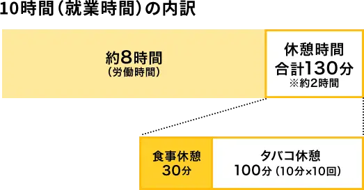 実働8時間(食事・タバコ休憩あり)・残業なし